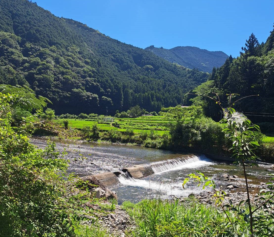 湯川川は、小さな滝が連なる美しい渓谷に端を発する美しいせせらぎの川。湯川せせらぎ農園は湯川川の美しい水で田を養う農園です。