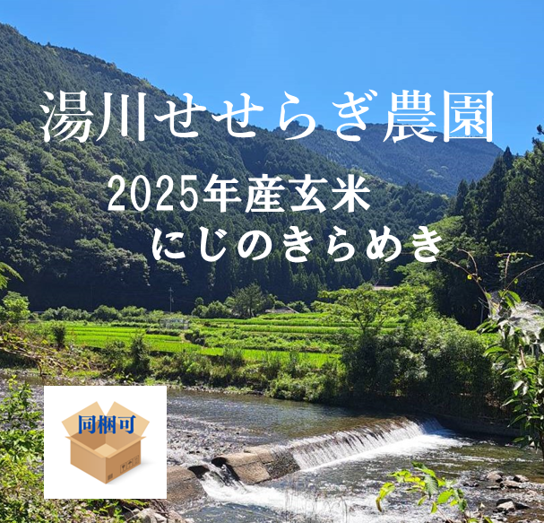 湯川せせらぎ農園の2025年産玄米「にじのきらめき」5kg。美しい水の故郷で育つ新米です