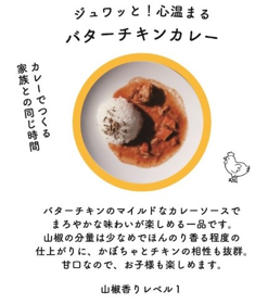 バターチキンのマイルドなカレーソースでまろやかな味わいが楽しめる一品。かぼちゃの濃厚な甘味が特徴で、ぶどう山椒がほんのりと香り、かぼちゃとチキンの相性が抜群。お子様から大人までお楽しみいただけます。付属のぶどう山椒の粉をかけてお召し上がりください。