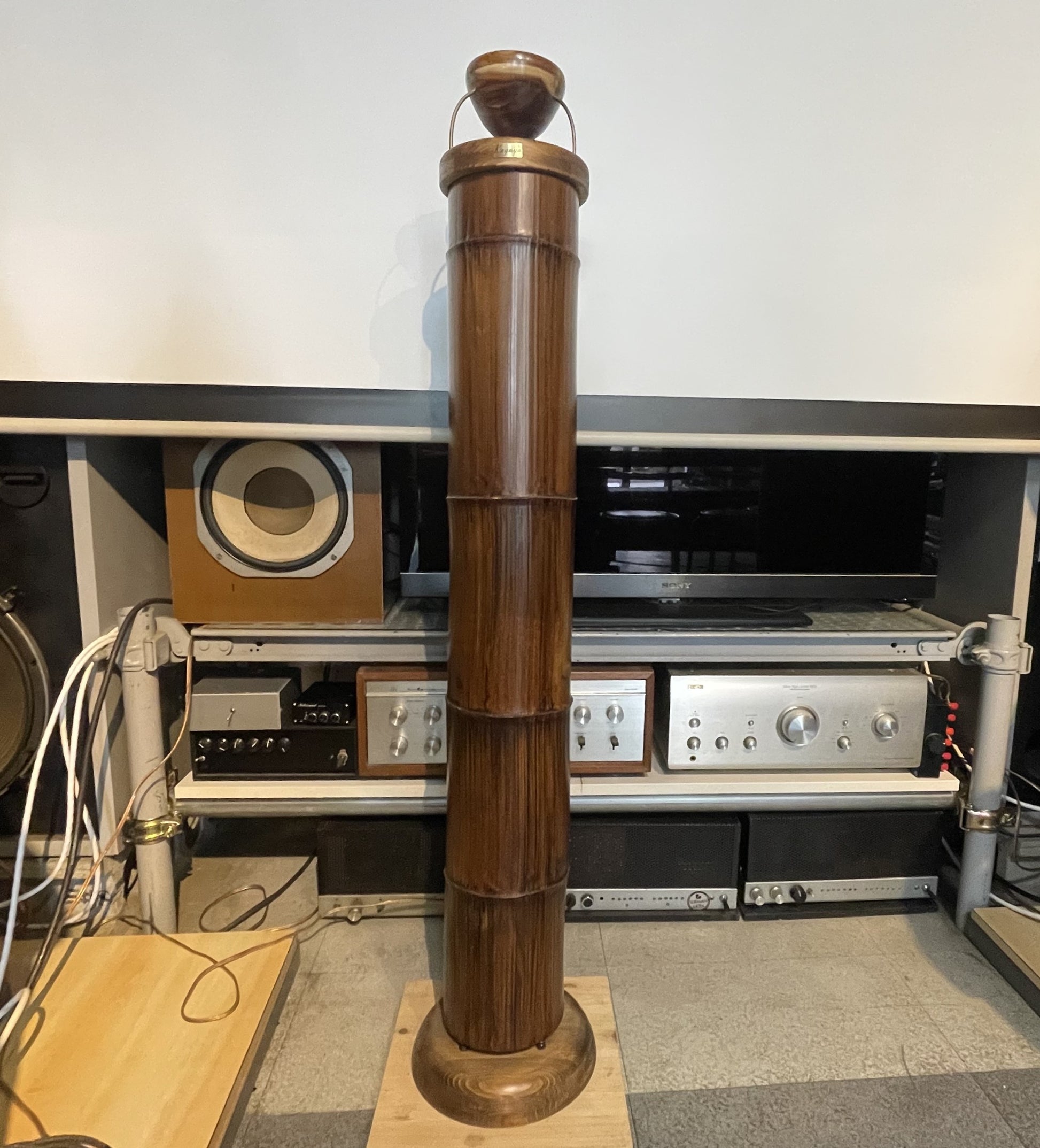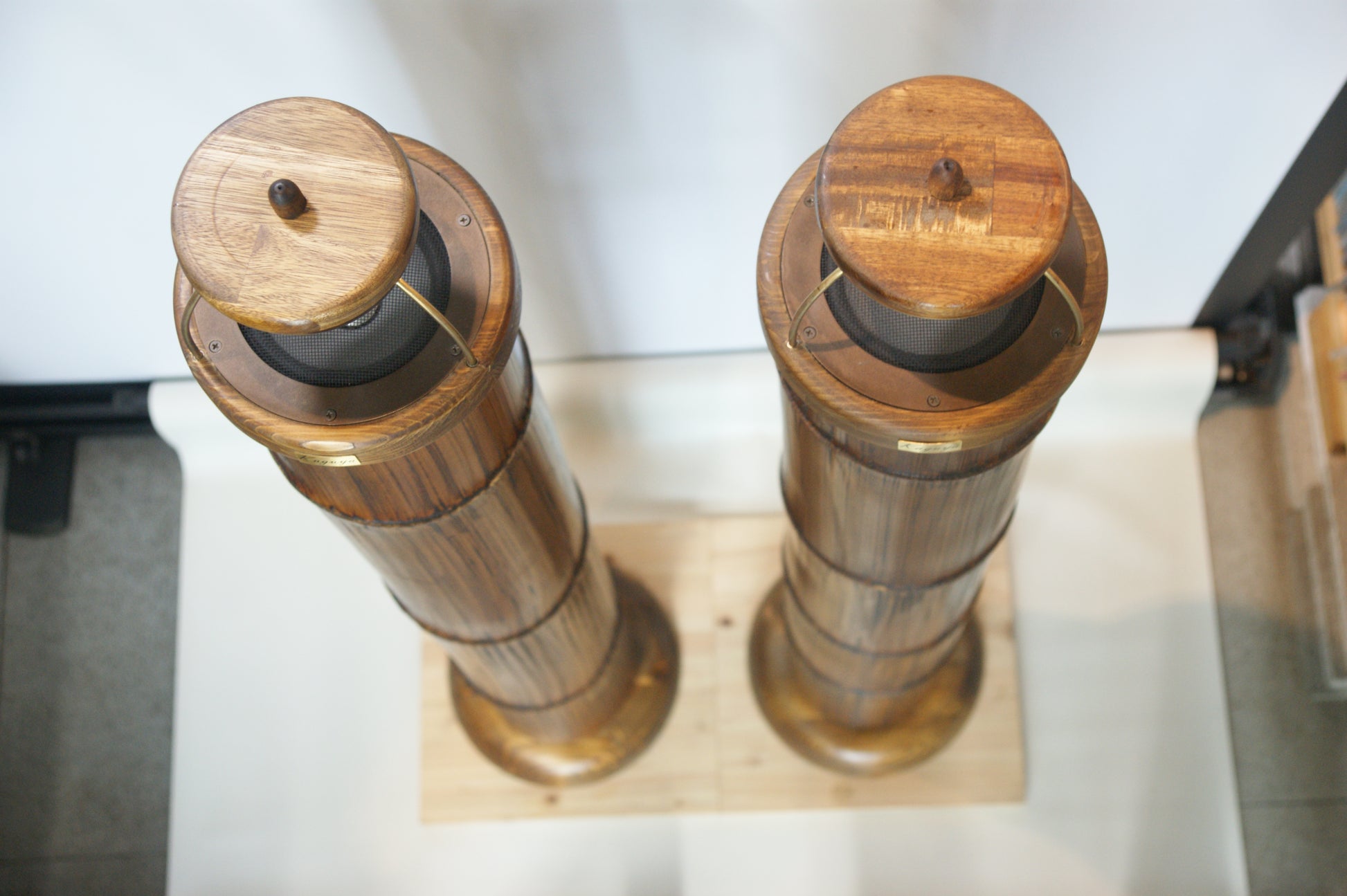 最も太い孟宗竹に、口径12cmのフルレンジスピーカーユニットを埋め込み、50ワットの入力に対応。竹の形を利用した特殊なバスレフ構造により、応答の良い、そして胸に響く豊かな低音を実現。また、低音が豊かになることで、音の臨場感が向上。中高音の透明感が増し、全方位スピーカーならではの音像定位と相まって、ホールの奥行や天井の高さと云った空気感までもを再現します。また、いずれのKaguyaもAVアンプと組み合わせてホームシアター用のフロントスピーカーとしても優れた音響効果を楽しむことが出来ます