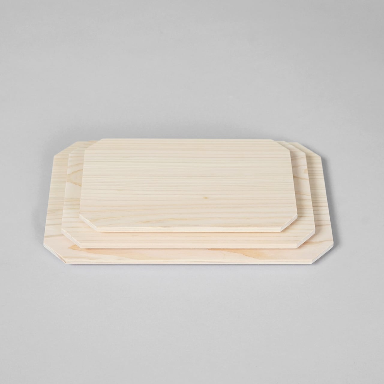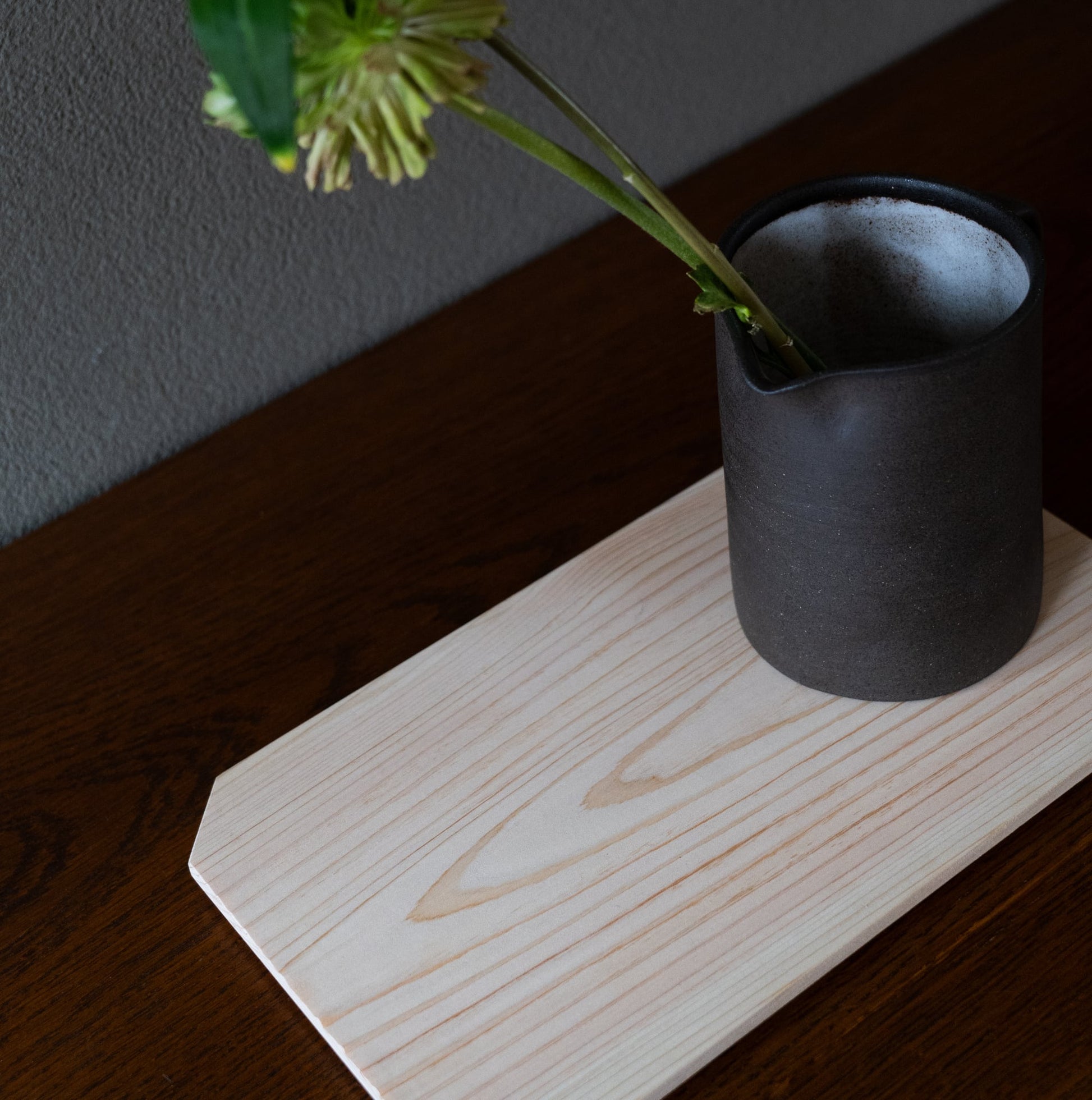 100年の歳月を生き抜いてきたヒノキを使った、一枚板無垢のトレーです。縁起物を想起させる末広がりの「八」角形にデザインしています。
