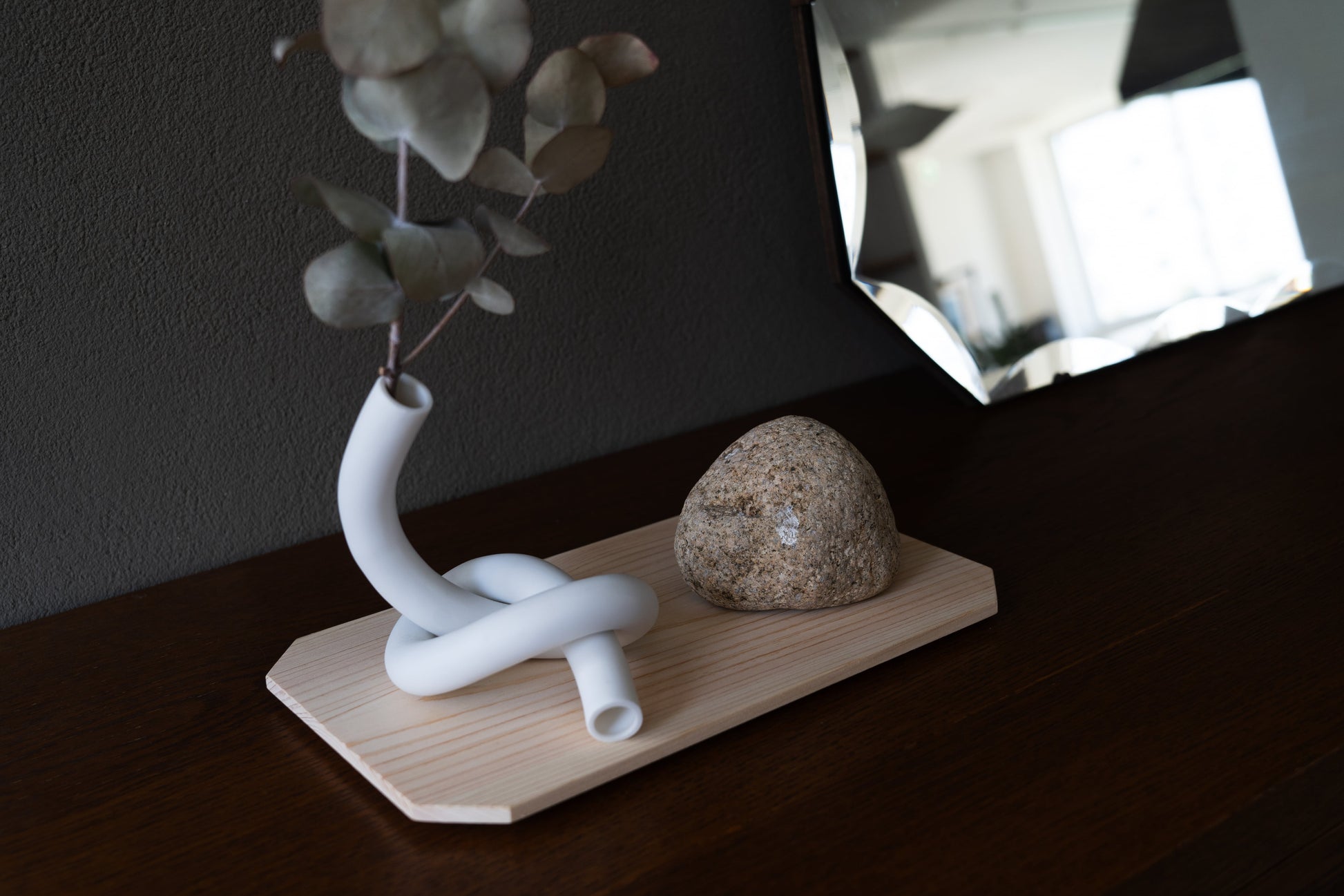 大阪を拠点に活動するクリエイティブユニットgrafがデザインし、和歌山の職人の手により丁寧に製作されています。長い歳月を生きてきた木々を末広がりの「八」を想起させるかたちにし、大切な節目に寄り添う縁起物として皆様の暮らしにお届けします。使い手の他者をもてなす心づかいを引き立てるプロダクトを目指しました。